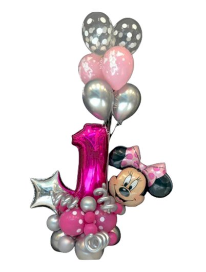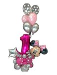 - Buntić od 9 latex balona na helij - 3 prozirna s točkicama, 3 roza s Minnie Mouse likovima, 3 shiny srebrna.