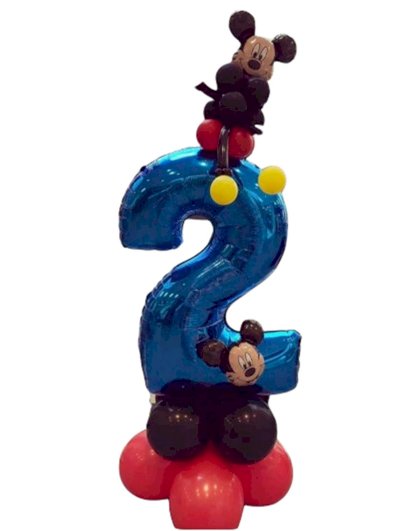 Dekoracija sadrži veliki folijski broj veličine oko 1 m s jednom mini folijom u obliku glave Micky Mouse, postolje od latex balona i malu Mickey Mouse figuricu koja sjedi na broj. Svi baloni su puhani na zrak.