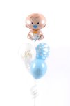 Dekoracija sadrži 5 balona: jedan u obliku bebe dječaka (veličina balona oko 70 cm) i 4 latex balona (iznutra premazani impregnacijskim gelom, kako bi duže letjeli).
