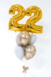 Bunt balona na helij sadrži: 3 folijska balon - dva u obliku bijelog srca i jedan u obliku kruga s natpisom "Happy birthday" veličine 45 cm. U buntiću se nalaze i 3 latex balona sa impergnacijskim gelom (kako bi duže letjeli). Na vrhu buntića nalaze se dva broja veličine oko 66 cm, te su baloni zajedno spojeni dekorativnom mašnom od modeling balona i privezani na ukrasni uteg.
