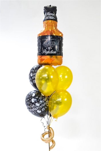 Bunt balona na helij sadrži 6 latex balona sa impergnacijskim gelom (kako bi duže letjeli), a na vrhu buntića nalazi balon u obliku boce viskija veličine 86 cm. Baloni su zajedno spojeni dekorativnom mašnom od modeling balona i privezani na ukrasni uteg.