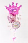Bunt balona na helij sadrži jedan folijski balon u obliku kruga s natpisom "Happy birthday" veličine 45 cm, te 5 latex balona sa impergnacijskim gelom (kako bi duže letjeli), od kojih su 2 prozirna sa konfetima. Na vrhu buntića nalaze se folija balon u obliku krune veličine oko 70 cm. Baloni su zajedno spojeni dekorativnom mašnom od modeling balona i privezani na ukrasni uteg.