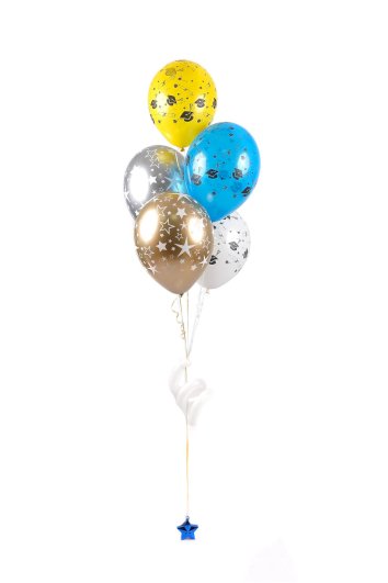Bunt balona sadrži 5 lateks balona na helij s tiskom (2 shiny balona i 3 u klasičnim bojama) privezanih na dekorativni uteg.