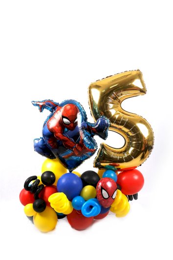 Dekoracija sadrži 2 folijska balona: jedan u obliku lika Spidermana dimenzije oko 80 cm i drugi u obliku broja veličine 1 m, koji stoje na postolju od latex balona različitih veličina. U dekoraciji se nalaze i pet frčkica od modeling balona. Svi baloni su puhani na zrak, osim broja koji je puhan na helij, kako bi lakše i ljepše stajao na dekoraciji.