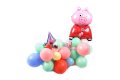 Dekoracija sadrži 3 folijska balona: Peppa pig veličine oko 70 cm i dvije mini folije s likom Peppe Pig. Folija baloni stoje na postolju od latex balona. Svi baloni su puhani na zrak.