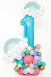 Dekoracija sadrži lateks balone koji čine postolje za folija balon u obliku broja. Na postolju balona i broju nalaze se dvije duge od modeling i manjih bijelih lateks balona.