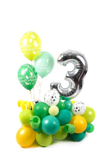 DEKORACIJA ZELENA S BROJEM I NOGOMETNIM LOPTAMA
