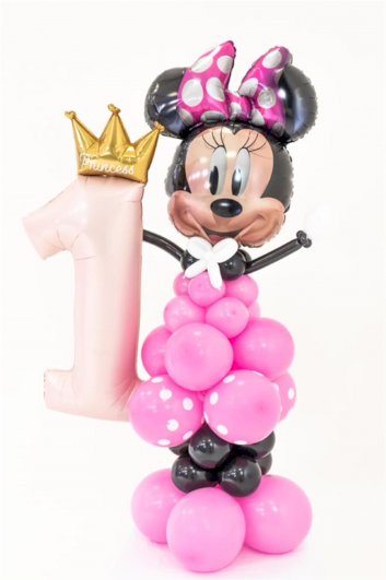 Dekoracija u obliku figure Minnie Mouse (veličine oko 1,5 m), koja u ruci drži folija balon broj 1 napuhan na zrak.