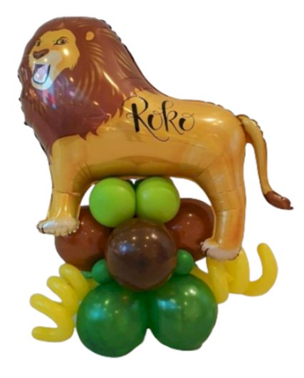 Dekoracija sadrži 1 folijski balon u obliku lava dimenzije oko 80 cm, koji stoji na postolju od latex balona. Svi baloni su puhani na zrak. Dimenzija dekoracije je oko 1 m.