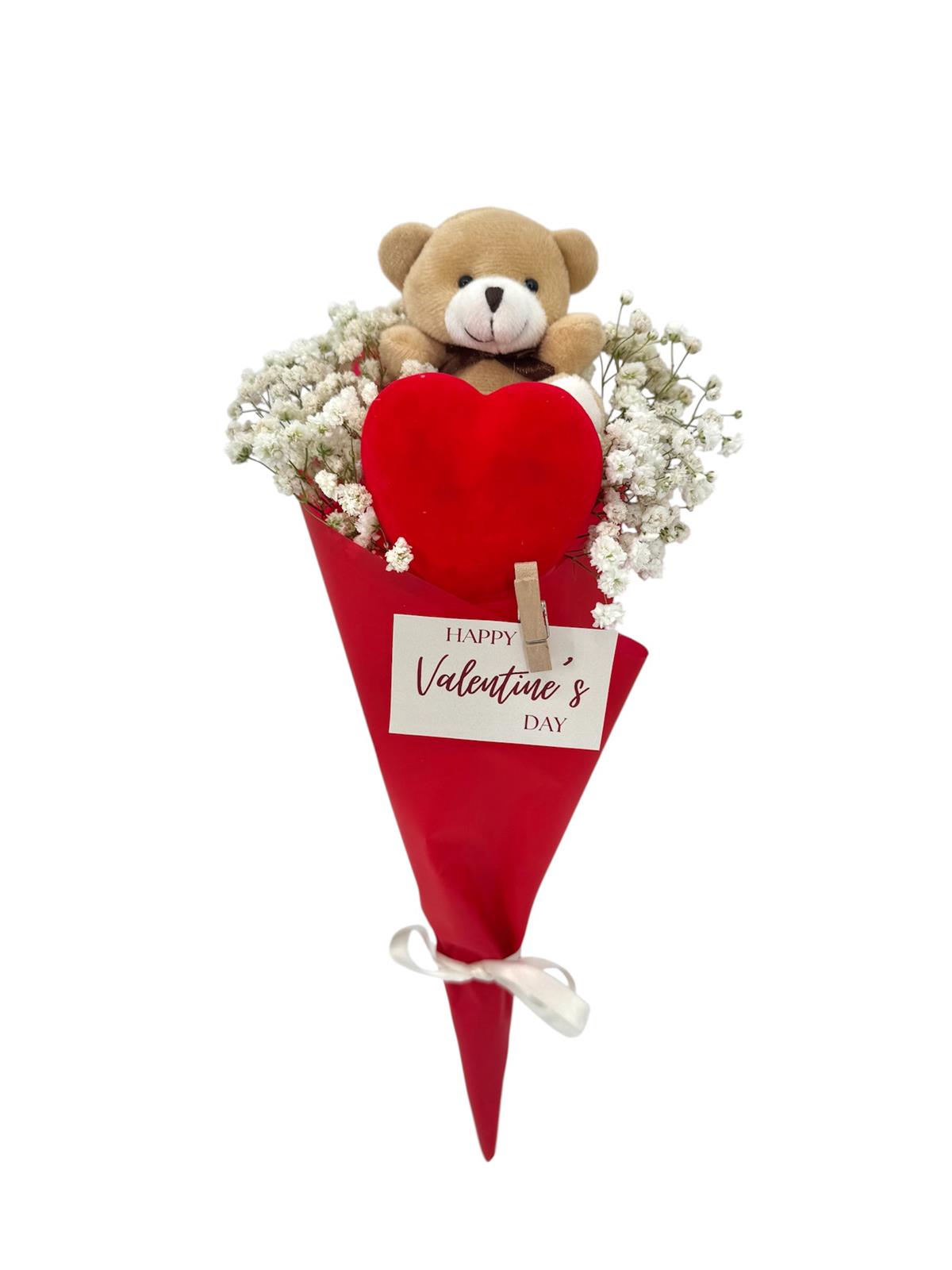 Mali romantični buket s medekom, šlajerima i porukicom čini ga savršenim poklonom za Valentinovo. Spoj nježnih detalja i poruke za Valentinovo idealan je način da pokažeš koliko ti je stalo. Naruči našu specijalnu dostavu na svoju adresu ili na adresu osobe kojoj poklanjaš i priredi romantično iznenađenje.