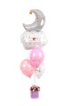 Dekoracija sadrži 5 balona: jedan u obliku oblaka i mjeseca (veličine cca 80 cm) i 4 latex balona s tiskom, iznutra premazani impregnacijskim gelom, kako bi duže letjeli.